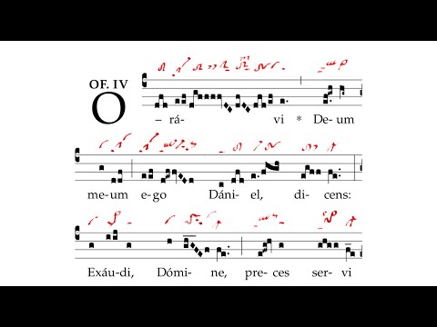 Chant text: “Orávi Deum meum ego Dániel dicens: Exáudi, Dómine, preces servi tui: illúmina fáciem tuam super sanctuárium tuum: et propítius inténde pópulum istum, super quem invocátum est nomen tuum, Deus.”